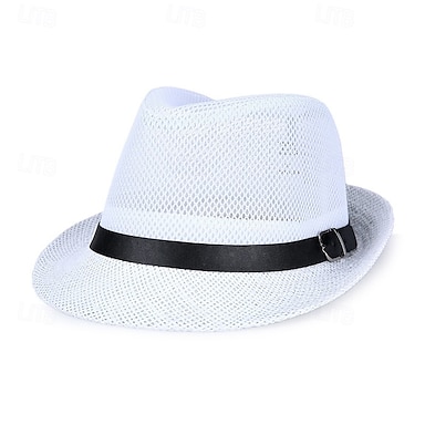 Herren Strohhut Sonnenhut Hut mit wilder Krempe Schwarz Weiß Leinen Gitter Modisch Brautkleider schlicht Strasse Täglich Glatt Atmungsaktiv
