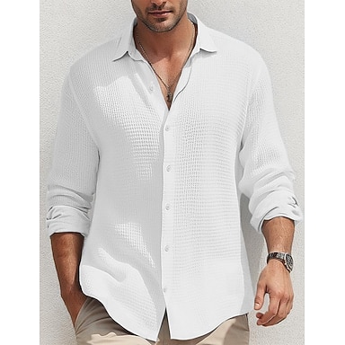 Herren Hemd Sommerhemd Knopfhemd Lässiges Hemd Waffel-Shirt Schwarz Weiß Blau Kaki Langarm Glatt Kargen Täglich Urlaub Bekleidung Modisch Brautkleider schlicht Komfortabel