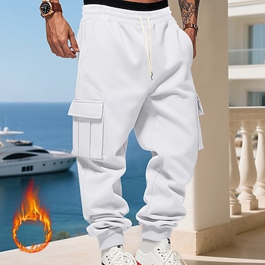 Herren Jogginghose Fleecehose Winterhose Cargo-Jogginghose Kordelzug Tasche Elastischer Bund Einfach Komfort Warm Sport im Freien Täglich Mode Lässig Schwarz Weiß Mikroelastisch