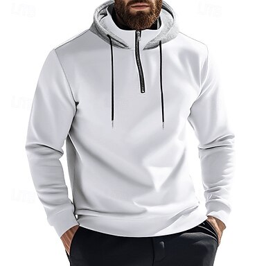 Herren Kapuzensweatshirt Viertelreißverschluss Kapuzensweatshirt Aprikose Schwarz Weiß Wein Rote Mit Kapuze Einfach Kordelzug Sport & Outdoor Täglich Ferien Polyester Streetwear Basic Lässig Frühling