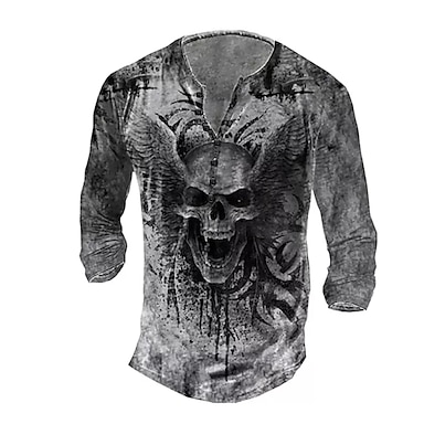 Herren T-Shirt T-Shirt Henley Shirt Tee Graphic Skull Henley Schwarz Weiß Blau Grün Grau 3D Druck Plus Größe Outdoor Täglich Langarm Button-Down Druck Kleidung Designer Stylish Vintage Basic