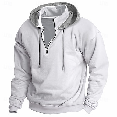 Herren Hoodie Sweatshirt Kapuze Hoodie mit Viertelreißverschluss Fleece-Hoodie Taktischer Kapuzenpullover Schwarz Weiß Wein Rote Khaki Mit Kapuze Glatt Patchwork Halfzip Troyer Arbeit Sport & Natur