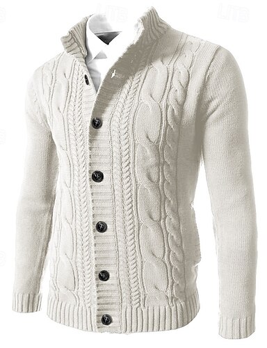 Herren Pullover Kleid Pullover Strickjacke Gerippt Zopfmuster Stricken Normale Oberteile Gestrickt Einfach Schalkragen Urlaub Mode Lässig Alltagskleidung Bekleidung Frühling Herbst Schwarz Weiß M L XL