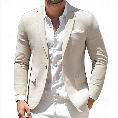Herren Leinenblazer Sport Jacke Notch-Kragen Mode Lässig Einfarbig Leinenblazer Himmelblau Standard Passform Einreihig Ein-Knopf