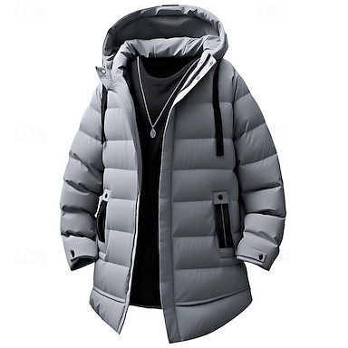 Herren Wintermantel Daunenjacke Gefütterte Jacke Tasche Baumwolle Urlaub Alltagskleidung Date Regulär Mode Lässig Bequem Thermowarm Herbst Winter Einfarbig Schwarz Armeegrün Grau Pufferjacke