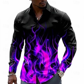 Herren Optische Täuschung Flamme Hemd Knopfhemd Lässiges Hemd Langarm Lässig Outdoor Ferien Sommer Frühling Umlegekragen 3D-Druck Hemden mit Kragen Schwarz Rote Purpur Grün