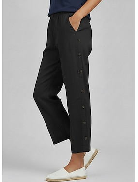 Damen Sommerhose 100% Baumwolle Komfort Volle Länge Hohe Taille Einfach Tasche Elastischer Bund Bequem Außenbereich Alltagskleidung Schwarz Weiß Rot Grün Sommer Normale Passform