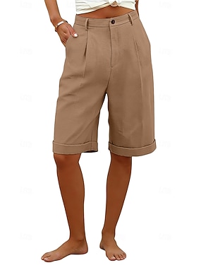 Damen Übergröße Shorts aus Baumwollleinen Leinen-inspirierte Hosen Gefütterte Shorts Sommerhose Einfach Lässig Komfort Lang Natürliche Taille Einfarbig Mikroelastisch Heim Straße Blau Weiß Grün Khaki