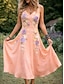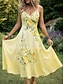 Damen Midikleid Shiftkleid Sommerkleid A Linie Kleid Urlaub Lässig Boho Strand Party Normale Passform Blumen Grafik Ärmellos Rundhalsausschnitt Gelb Rosa Grün Sommer Frühling
