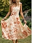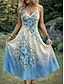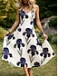 Damen Midikleid Freizeitkleid Elegant Urlaub Vintage Normale Passform Blumen Ärmellos V Ausschnitt Blau Weiß Rote Sommer Frühling