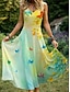 Damen Maxikleid Sommerkleid A Linie Kleid Unterkleid Urlaub Lässig Strand Normale Passform Blumen Grafik Ärmellos V Ausschnitt Blau Gelb Rosa Sommer Frühling