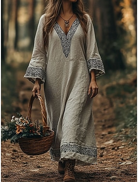 Damen Maxi langes Kleid A-Linie Kleid Urlaub Lässig Strand Reguläre Passform Grafisch Geometrisch Langarm V-Ausschnitt Pink Blau Lila Grün Sommer Frühling Herbst