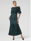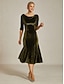Damen Maxikleid Partykleid Elegant Vintage Normale Passform Einfarbig Dreiviertelarm V Ausschnitt Smaragdgrün Herbst Winter