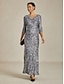 Damen Paillettenkleid Spitze Glitzer Elegant Formal Halbformell Party Abend Party Normale Passform Einfarbig 3/4 Ärmel V-Ausschnitt Grau Herbst Winter