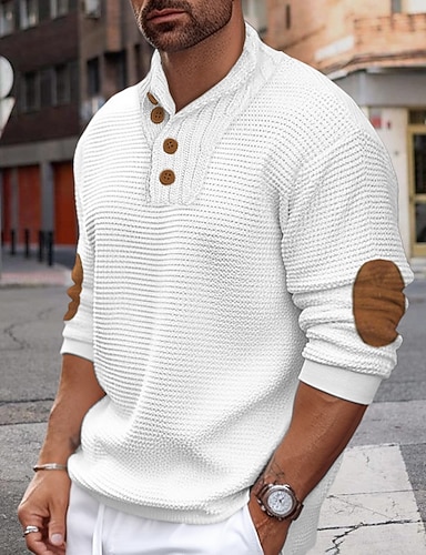 Herren Pullover Pullover mit Zopfmuster Patch-Pullover Gerippt Stricken Standard Strick Glatt Ständer Vintage warm halten Freizeitskleidung Ausgehen Bekleidung Herbst Winter Schwarz Blau M L XL