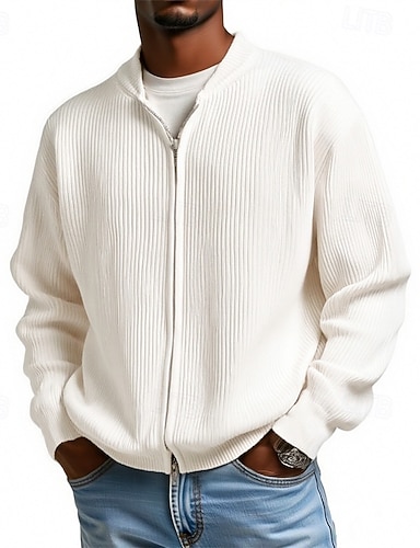 Herren Kleid Pullover Strickjacke Zip Pullover Reißverschluss Strickpullover Gerippt Stricken Standard Reißverschluss Seitentaschen Feste Farbe Modisch Klassisch Freizeitskleidung Verabredung