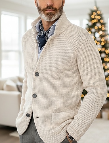Herren Pullover Strickjacke Gerippt Stricken Normale Oberteile Knopf hoch Gestrickt Einfarbig Schalkragen Urlaub Mode Lässig Alltagskleidung Bekleidung Frühling & Herbst Herbst Winter Schwarz Braun M