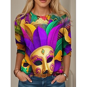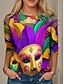 Karneval Damen Pullover Sweatshirt Grafik Abstrakt Lässig Langarm Rundhalsausschnitt Reguläre Oberteile Lässige Straßen Alltagskleidung Gelb Lila Grün Frühling Winter
