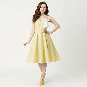 Rockabilly Midlänge A-Linien-Kleid Ärmellos Gestreift Tailliert und ausgestellt Kostüm Damen Karneval Valentinstag Lässig Heimkehr Retro-Mottoparty Erwachsene Kleid Sommer Frühling