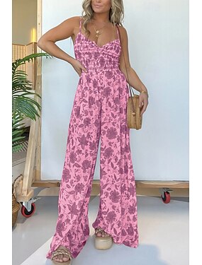 Damen Normal Jumpsuit Strassenmode Blumen Spaghettiträger V Ausschnitt Bedruckt Strasse Täglich Regular Fit Rosa Blau Khaki Sommer