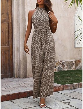 Damen Normal Jumpsuit Strassenmode Geometrisch Ärmellos Ständer Tasche Bedruckt Strasse Täglich Regular Fit Aprikose Sommer
