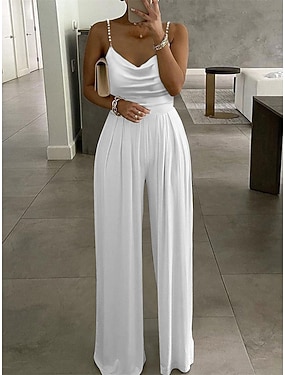 Damen Normal Jumpsuit Elegant Feste Farbe Ärmellos Ein-Schulter mit Schnürung Rückenfrei Hochzeit Party Regular Fit Schwarz Weiß Gelb Sommer