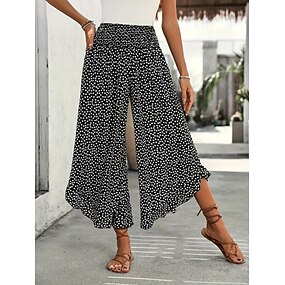 Damen Weites Bein Chinos Mode Streetwear Volle Länge Hohe Taille Tupfen Tasche Elastischer Bund Druck Bequem Weich Mikroelastisch Outdoor Straße Schwarz Rote Grün Frühling Herbst Normale Passform