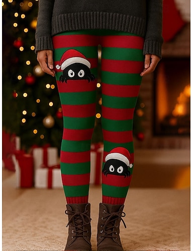 Damen Leggings Urlaub Vintage Mode Knöchellang Hohe TaillePantsWeihnachten Grafik Gestreift Drucken Thermowarm Weich Atmungsaktiv Dehnbar Outdoor Urlaub Straße Rote Frühling Herbst Winter Schmale