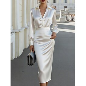Damen Midikleid Satinkleid Arbeitskleidung Elegant Mode Modern Outdoor Urlaub Ausgehen Normale Passform Einfach Langarm Hemdkragen Weiß Sommer Frühling