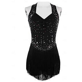 Eiskunstlaufkleid Damen Mädchen Eislaufkleid Schwarz Offener Rücken Asymmetrischer Saum Mesh Hohe Elastizität Training Wettkampf Eislaufbekleidung Klassisch Kristall/Strass Ärmellos Eiskunstlauf