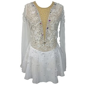 Eiskunstlaufkleid Damen Mädchen Eislaufen Kleider Weiß Patchwork Daumenloch Gitter Spandex elastisch Ausbildung Praxis Professionell Eiskunstlaufkleidung Kristalle Langarm Eiskundstlauf