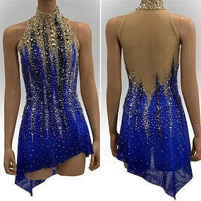 Eiskunstlaufkleid Damen Eislaufen Kleid Blau Patchwork Offener Rücken Dehnbar Training Wettbewerb Eiskunstlaufkleidung Klassisch Kristall / Strass Ärmellos Eislaufen Eiskundstlauf