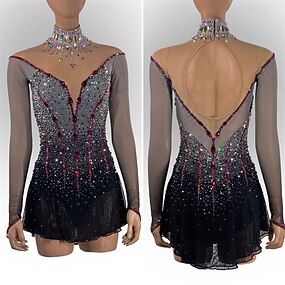 Eiskunstlaufkleid Damen Mädchen Eislaufen Kleid Schwarz Rrot Daumenloch Halo-Färbung Hohe Elastizität Professionell Wettbewerb Eiskunstlaufkleidung Thermowarm Kristall / Strass Langarm Eislaufen