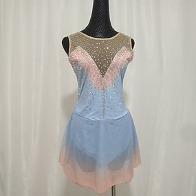 Eiskunstlaufkostüme für Erwachsene und Kinder, personalisiert mit farbigen Diamanten, blaues Spandex-Netz, Graduierungskostüme, Wettkampftraining, Kleider mit Farbverlauf und Strasssteinen,