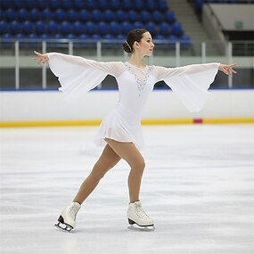 Eiskunstlaufkleid Damen Eislaufen Kleid Weiß Patchwork Offener Rücken Dehnbar Training Wettbewerb Eiskunstlaufkleidung Klassisch Kristall / Strass Ärmellos Eislaufen Eiskundstlauf