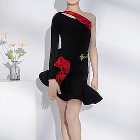 Latein-Tanz Tanzkleidung für Kinder Lateinischer Salsa-Tanz Röcke Farbaufsatz Mädchen Leistung Freizeitskleidung Langarm Hoch Spandex