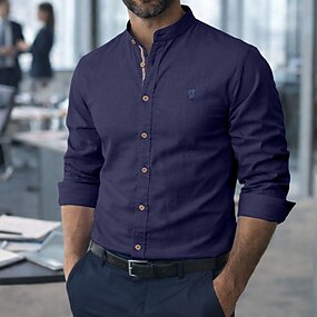 Herren Leinenhemd Popover-Hemd Freizeithemd Stehkragenhemd Einfach Urlaub Kreuzfahrt Schwarz Weiß Rosa Marineblau Langarm Kragen Frühling & Sommer Bekleidung