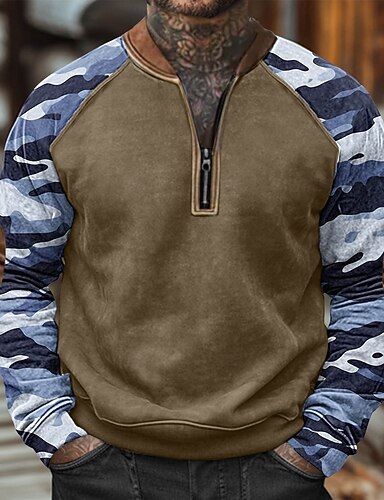 Herren Sweatshirt Viertelreißverschluss Sweatshirt Armeegrün Grün Khaki Tarngrün Halber Reißverschluss Farbblock Tarnung Halber Reißverschluss Druck Lässig Täglich Ferien Polyester Vintage Streetwear