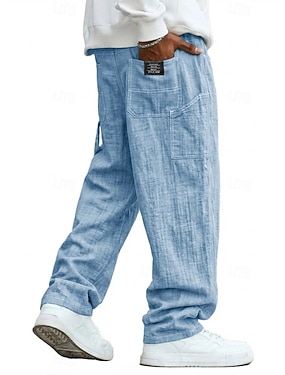 Herren Leinenhosen Hose Sommerhose Kordelzug Elastischer Bund Gerader Schnitt Einfach Komfort Atmungsaktiv Volle Länge Lässig Täglich Ferien Mode Klassicher Stil Blau Schwarz Unelastisch
