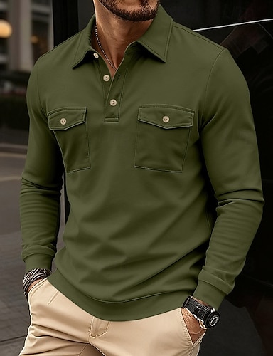Herren Golfshirt Golf Poloshirts Arbeit Lässig Revers Langarm Basic Modern Einfach Knöpfe Frühling Herbst Normale Passform Denim Blue Schwarz Marineblau Hellgrau Armeegrün Dunkelgray Golfshirt