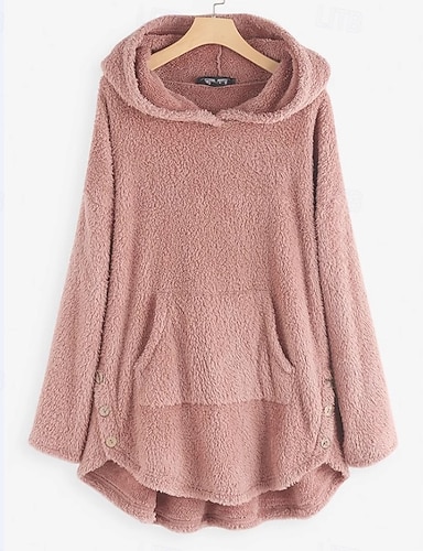 Damen Kapuzenpullover Einfach Lässig Langarm Mit Kapuze Normale Oberteile Straße Alltagskleidung Lässig Tasche Knöpfe Schwarz Weiß Rosa Rote Grün Herbst Winter