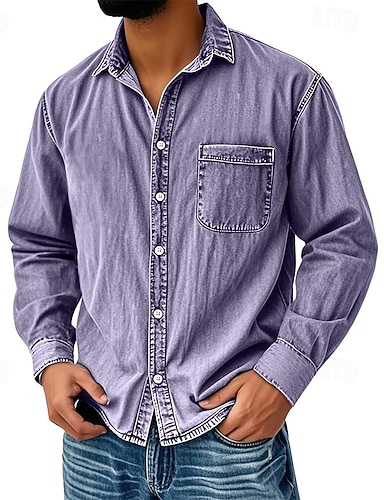 Herren Hemd Freizeithemd Vintage-Shirt Knopfhemd Schwarz Hellgrün Wein Marineblau Blau Langarm Einfach Revers Ausgehen Streetwear Tasche Bekleidung Mode Retro Vintage