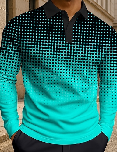 Herren Tupfen Geometrisch Polo Langarm Polo-Shirts Revers Lässig Athleisure Alltagskleidung 3D-Druck Knöpfe Frühling Herbst Winter Blau Purpur Grün