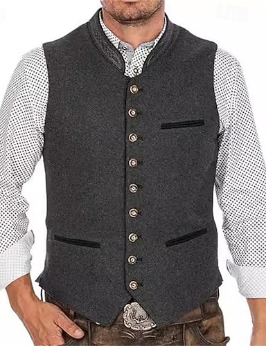 Herren Weste Gilet Urlaub Party Geschäft Mode Lässig Frühling Herbst Tasche Knöpfe Polyester Bequem Einfach Einreihig Ein-Knopf V Ausschnitt Normale Passform Grau Weste