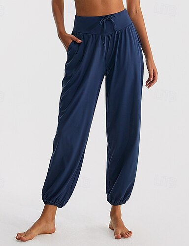 Damen Fitnesshose Pilates-Hosen Yogahose Kordelzug Mit Taschen Sonnenschutz Leicht Hohe Taille Pilates Fitnessstudio Zumba Unterteile Einfarbig Melonen-Rot Schwarz Dunkelmarine Herbst Sport