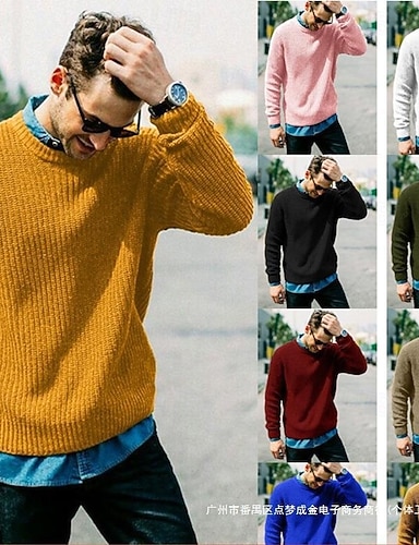 Herren Pullover Gerippt Stricken Normale Oberteile Gestrickt Schmale Passform Einfach Rundhalsausschnitt Strickware Zeitgenössisch Lässig Alltagskleidung Bekleidung Herbst Natürliches Gelb Schwarz S