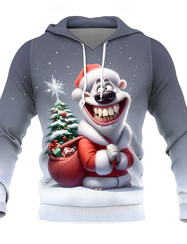 Weihnachten Herren Tiermotiv Weihnachtsmann Kapuzensweatshirt Pullover Mode Täglich Rundhalsausschnitt Heim Party Geschenk Rote Blau Kordelzug Herbst Winter Designer