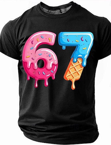 Herren Lustiger Slang 67 T Shirt Kurzarm T-Shirt 3D-Druck Rundhalsausschnitt Hemd Mode Täglich Straße Täglich Schwarz Rote Blau Sommer Frühling Bekleidung S M L XL XXL XXXL