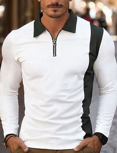 Herren Poloshirts Viertel-Reißverschluss-Poloshirt Alltagskleidung Date Revers Langarm Mode Basic Farbblock Reißverschluss Frühling Herbst Normale Passform Schwarz Weiß Wein Marinenblau Blau Hellgrau
