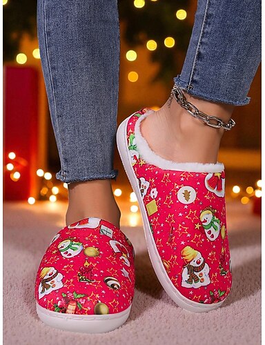 rote Weihnachtspantoffeln für Damen mit Schneemann &Urlaubsdruck, warme Plüsch-Hausschuhe für den Winter &Weihnachtsgeschenk